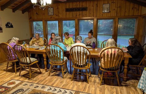 The sleeping arrangements are four women to a bedroom. Each bedroom has a full bathroom. At check out, choose your preference of queen bed, deluxe folding bed, or bunk bed. Quantities are limited.
